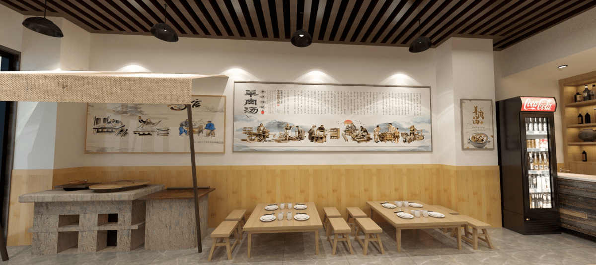 ?顧客體驗(yàn)與氛圍營造?:通過色調(diào)(原木色與暖黃燈光)、材質(zhì)(粗陶碗、火燒石臺面)及燈光設(shè)計(LED燈帶、卡布燈箱),營造兼具質(zhì)樸感與現(xiàn)代感的用餐環(huán)境,增強(qiáng)沉浸式體驗(yàn),尤其通過半通透隔斷、水磨石等元素吸引年輕群體,平衡傳統(tǒng)與時尚需求。?